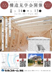 構造見学会開催・3月14日(土)15日(日)10:00~16:00