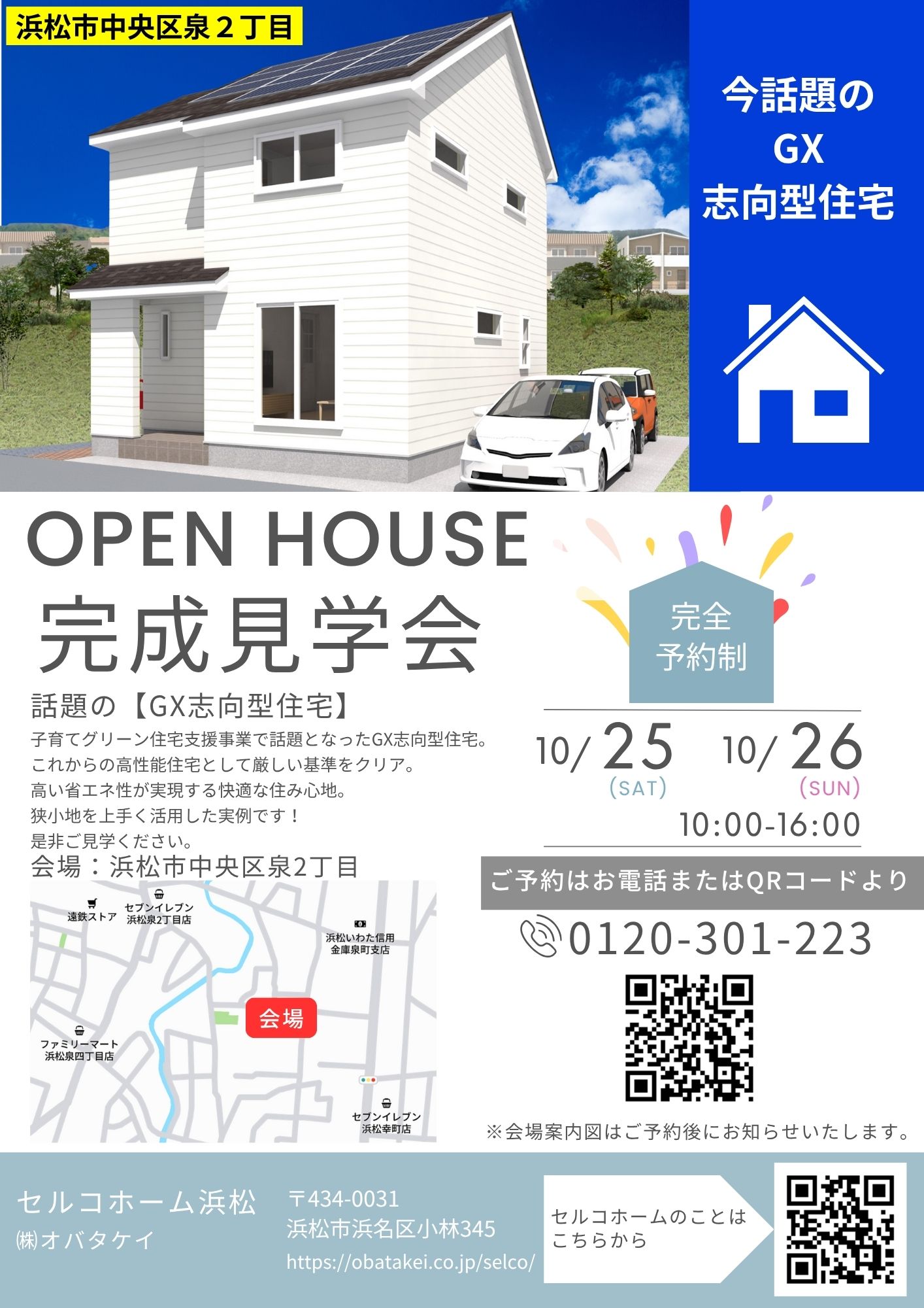 OPEN HOUSE完成見学会開催!10/25(土)・26(日)9:00~16:00・・・浜松市中央区泉2丁目